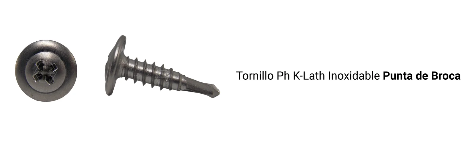 Lo característico de este tornillo en específico es su cabeza K-Lath con acceso en punta de cruz.