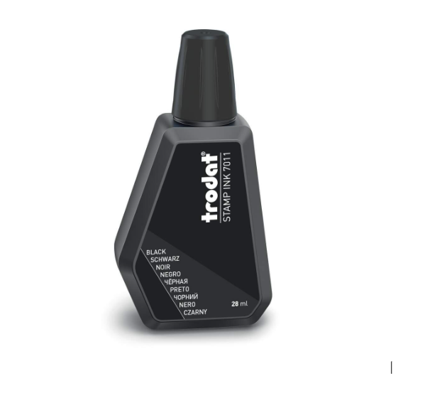 Eliminación de la tinta para sello: Para eliminar las tintas para sello estándar Trodat con base al agua se recomienda, según el tipo de superficie a tratar, lo siguiente:Superficies lisas y no absorbentes: limpie con agua, eventualmente con jabón o un detergente ligero sin disolvente. Materiales absorbentes, como textiles: remoje y frote o cepille con agua jabonosa y repita con disolventes polares como, por ejemplo, alcohol. ATENCIÓN: primero pruebe la compatibilidad del sustrato con el disolvente (en un área pequeña, no muy visible).Piel: agua jabonosa y frote o cepille.